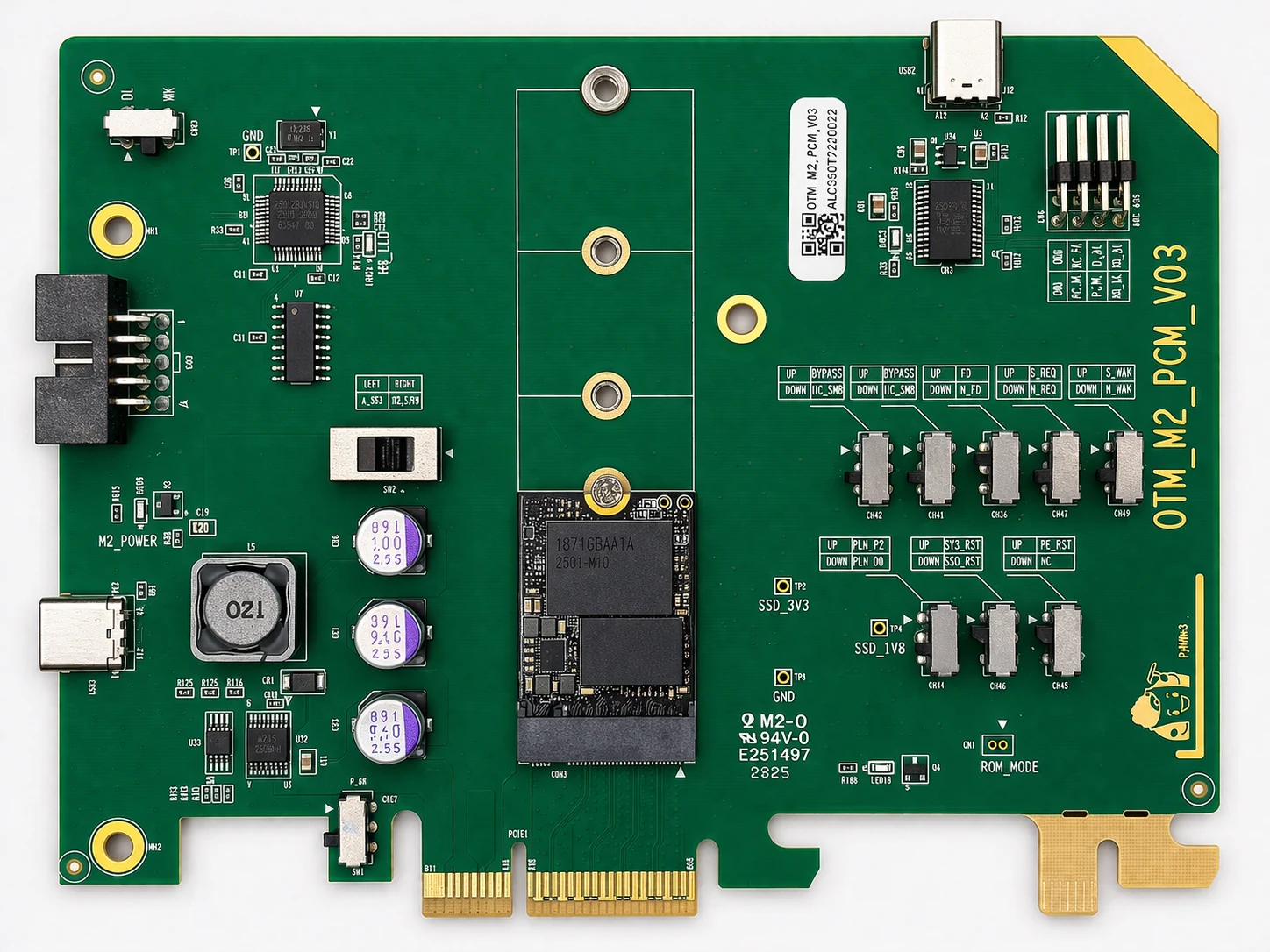 This accessory is intended for Gen5 M.2 SSD validation where controlled power sequencing, repeatable power-cycle behavior, and voltage or current observation are important for development and qualification. It is well suited for compact bench setups that still require automation-friendly control over power transitions and management-side debug access.