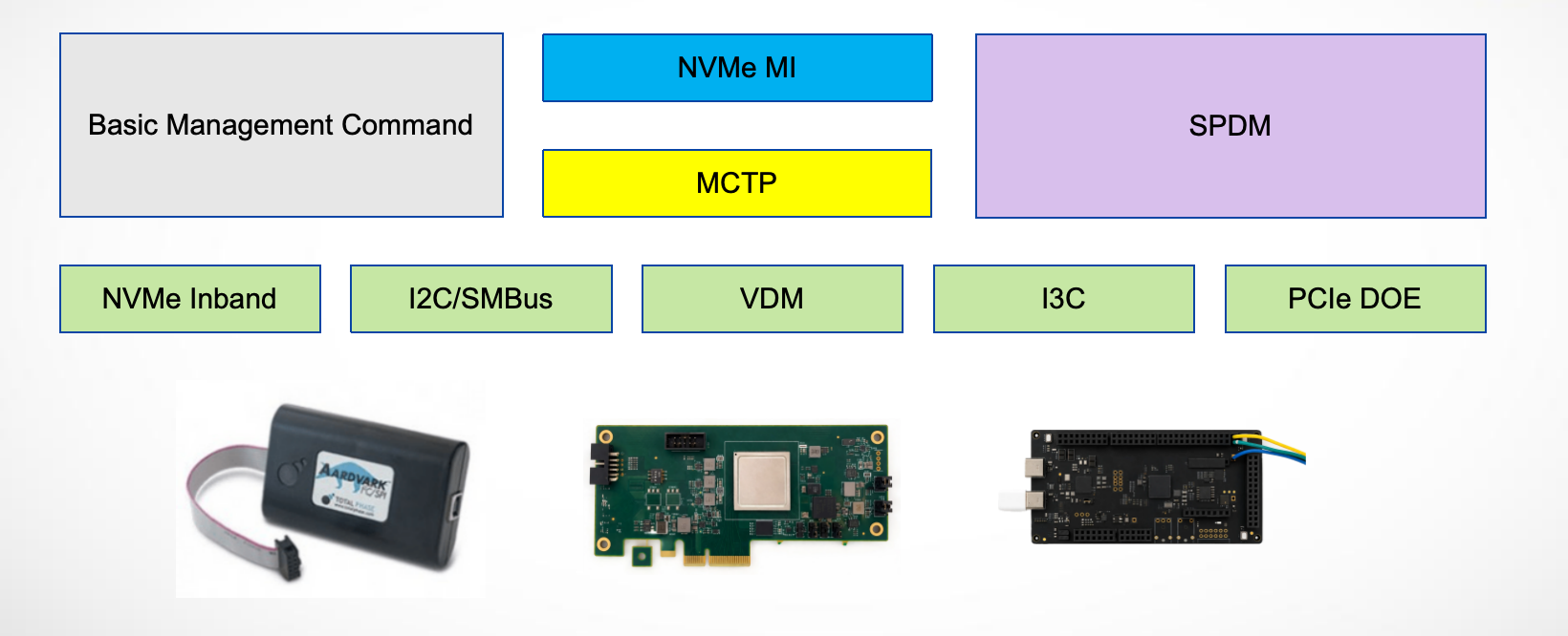 By using the Aardvark I2C/SPI Host Adapter, PyNVMe3 delivers a reliable and flexible infrastructure for NVMe-MI testing, eliminating the need for dedicated server systems while providing all the essential capabilities required for thorough management interface validation.